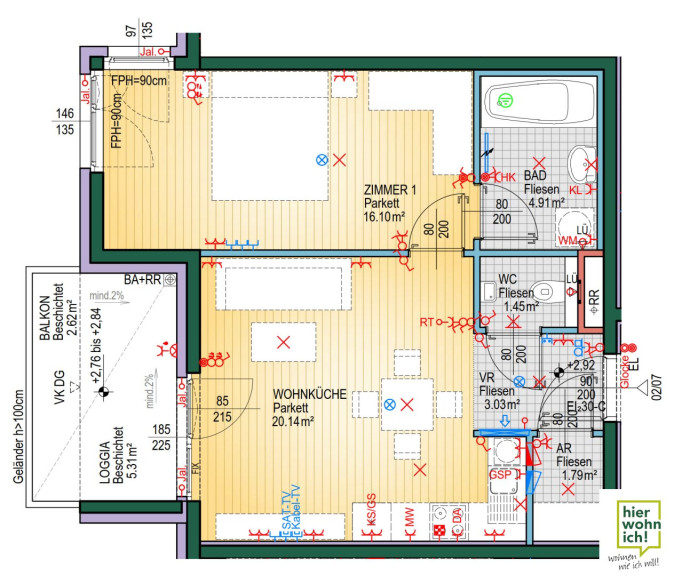 Gesamtmiete inkl. BK und USt.: € 890,00 (exklusive Strom, Wasser und Heizung)