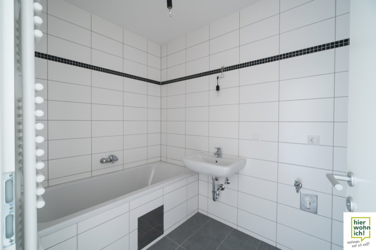 - 1 Badezimmer mit Badewanne, Waschbecken und WM-Anschluss