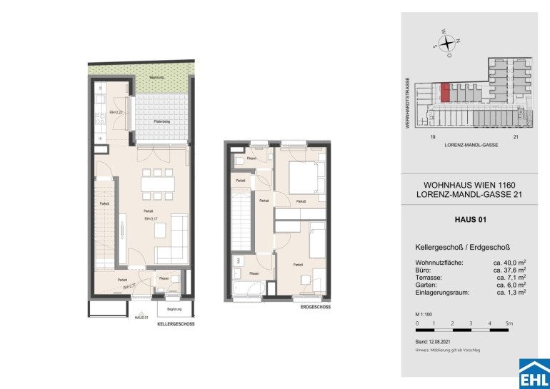 Das Objekt befindet sich im Erdgeschoss mit eigener zusätzlicher Etage und verfügt über einen großzügigen Wohnraum mit voll ausgestatteter Küche und direktem Zugang in den Garten mit Terrasse, zwei ruhige, getrennt begehbare Schlafzimmer, eine helles Badezimmer mit Wanne und Waschmaschinenanschluss, zwei separate Toiletten mit Fenster, sowie einen Vorraum im unteren Stockwerk. Das geräumige Wohnzimmer mit Küche, sowie eine Toilette befinden sich ebenfalls im unteren Stockwerk. Der Garten mit Terrasse bietet einem frische Luft, wann immer man sie braucht und rundet das Wohnerlebnis perfekt ab.