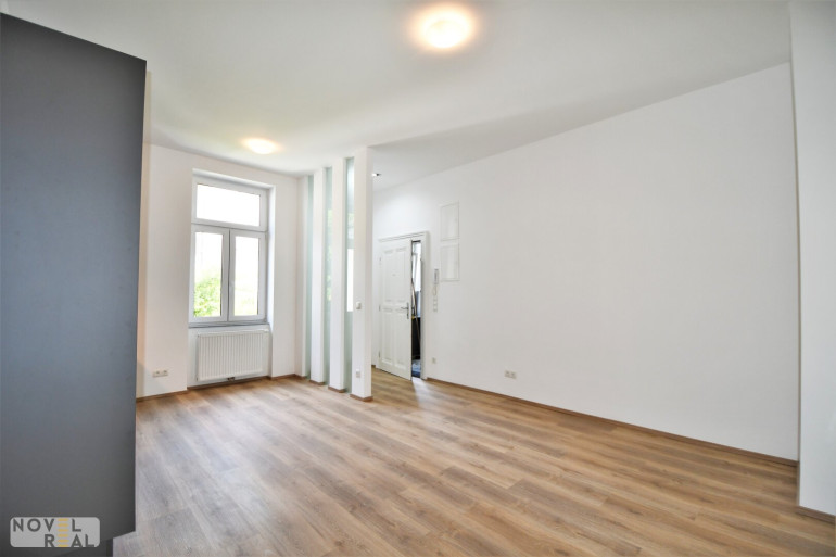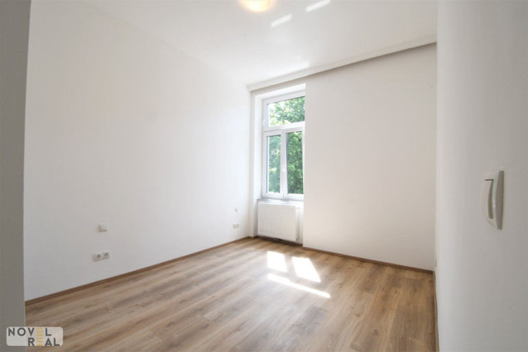 In einem von Grund auf sanierten Gebäude gelangt diese 2,5 Zimmer Wohnung mit Raumhöhen bis zu 3m zur Miete. Durch die wunderschönen mit Gesimse verkleideten Gänge gelangt man über das Stiegenhaus in das 1. Stockwerk(ohne Lift) zur besagten Mietwohnung. Die Wohnung wurde 2022 generalsaniert. Eine moderne Einbauküche mit anthrazit farbigen Küchenfronten harmoniert ausgezeichnet mit dem schönen Echtholzparkett, der sich durch die gesamte Wohnung zieht. Das wunderschöne modern verflieste Badezimmer besitzt ein Handwaschtisch, eine große Regendusche sowie das WC welches im Badezimmer separat nochmals über eine Milchglas Türe abgetrennt ist.