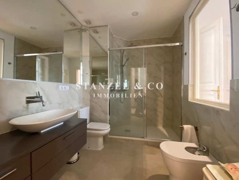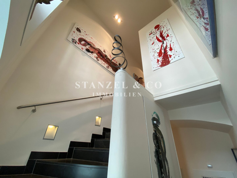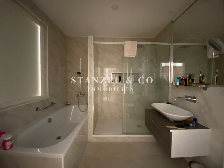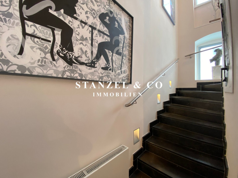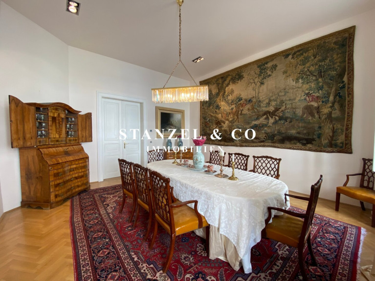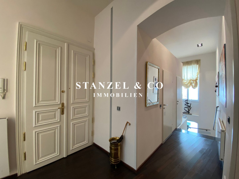( große Diele, Wohnsalon, Erkerzimmer, 2 Schlafzimmer, 3 Bäder, 4 WCs, moderne Wohnküche, großer Souterrain-Bereich/Gästebereich, Garagenstellplatz )
