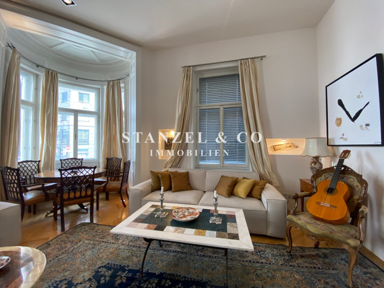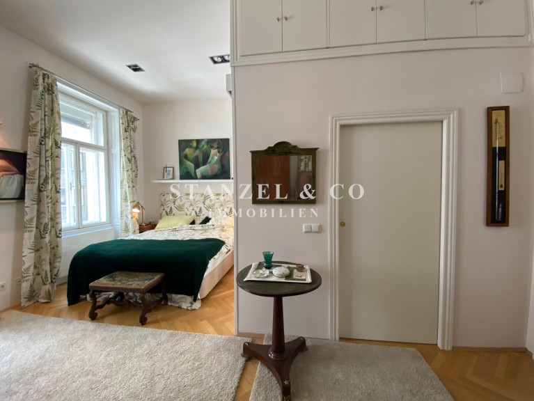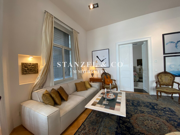 Das von der Künstlerin persönlich eingerichtete klassische Altbauapartment ist elegant und großzügig.