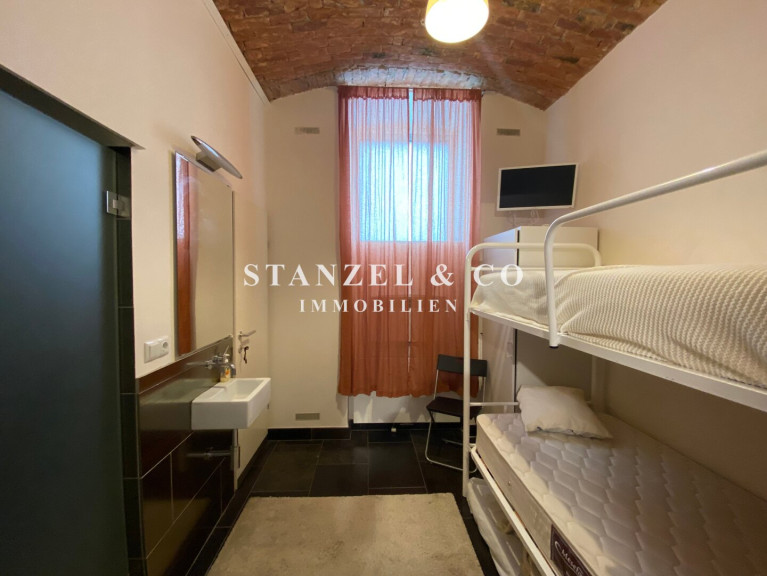 Souterrain: Die untere Ebene verfügt über ein schönes Ziegel- Deckengewölbe und kann sowohl als Gästewohnung als auch als Wellness-/Fitnessbereich genutzt werden. Derzeit teilt sich dieser Bereich in einen Vorraum, 2 kleine Räume mit jeweils anschließendem Badezimmer sowie einem Wirtschafts-/ Abstellraum und Belichtung.