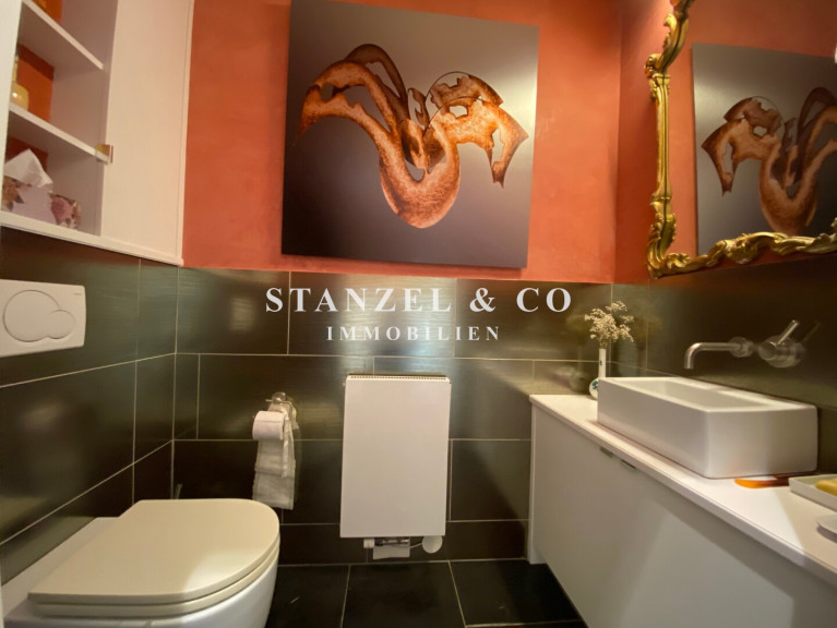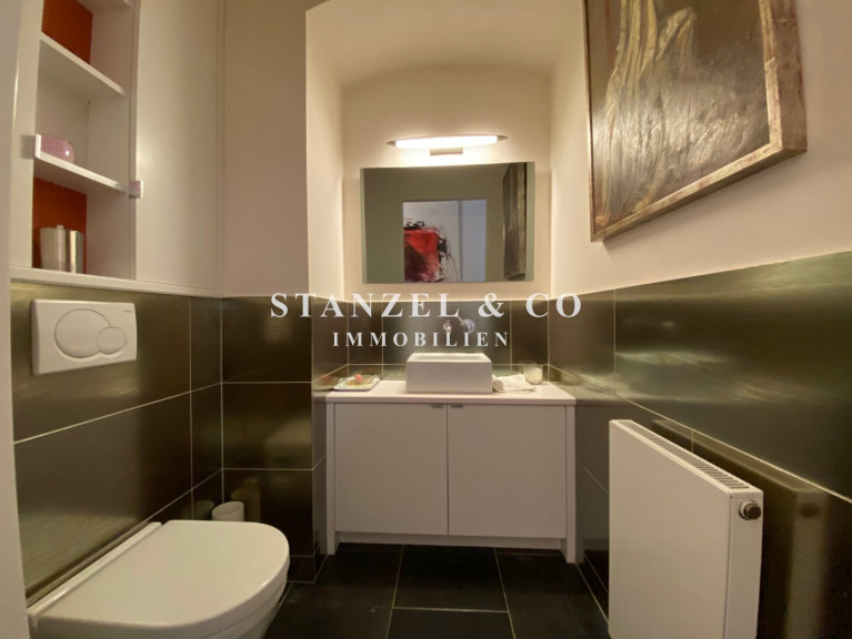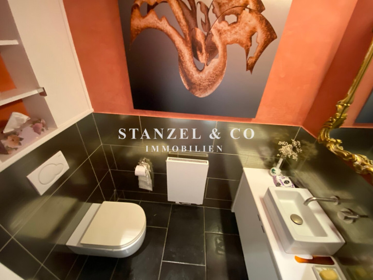 Des Weiteren gibt es auf dieser Ebene ein Gäste-WC mit Handwaschbecken.
