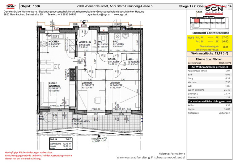 Diese Genossenschaftswohnung ist die perfekte Wahl für Paare, kleine Familien oder alle, die Wert auf ein harmonisches Zuhause legen. Der Mietpreis von 913,94 € macht diese Wohnung zudem zu einer attraktiven Option in Wiener Neustadt.