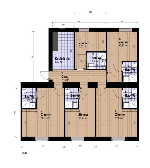 Das Zimmer hat ca. 15 m², welches sich wie folgt optimal aufteilt: Schlafzimmer + Bad + separates WC