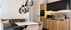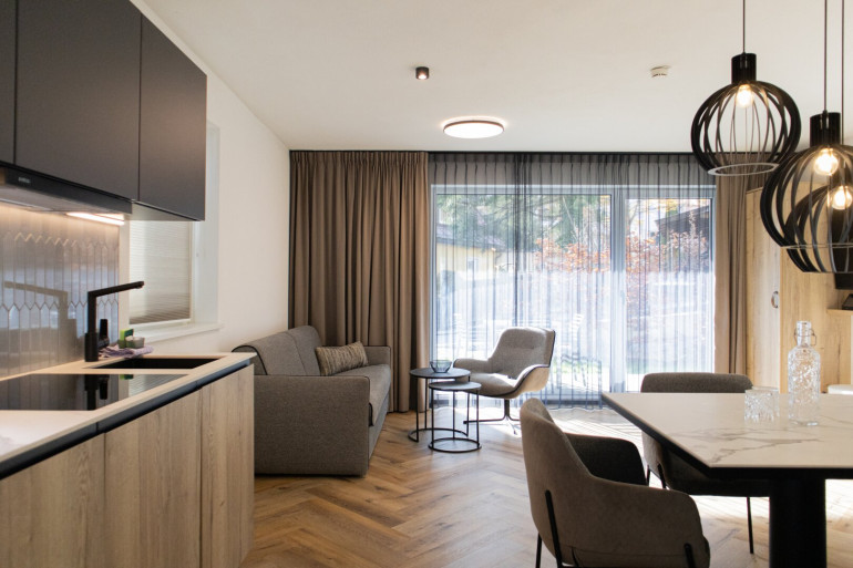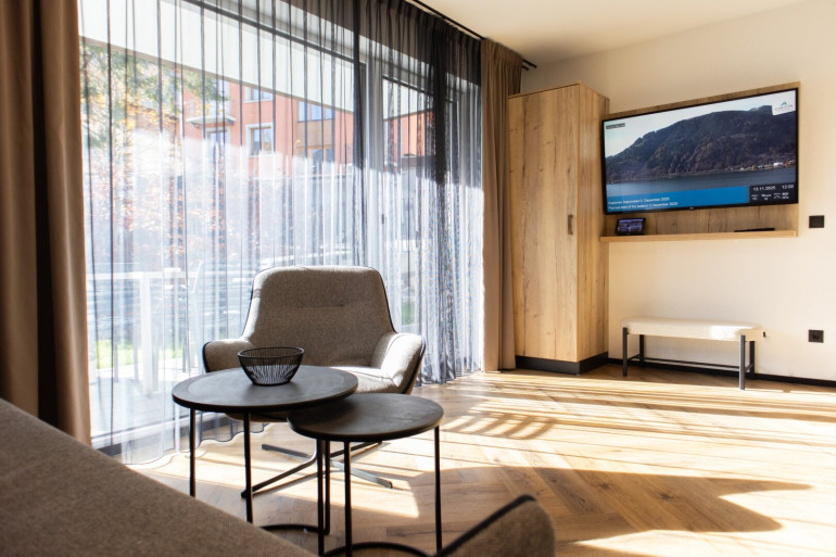 56 stilvoll eingerichtete Suiten und Apartments versprechen einen Aufenthalt voller Komfort und Wohlbefinden. Ergänzt wird das Angebot durch einen gemütlichen Wellnessbereich mit Innenpool, Saunen und Ruheoase, der zum Entspannen und Auftanken einlädt.