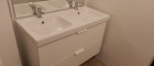 Das geräumige Bad ist mit einem Doppelwaschtisch ausgestattet, Bad und WC sind getrennt nutzbar.