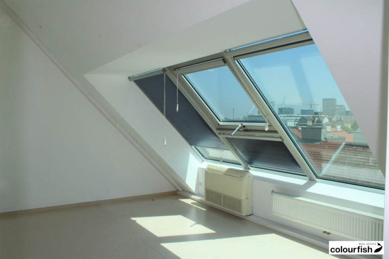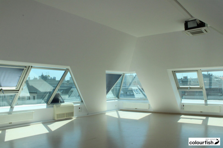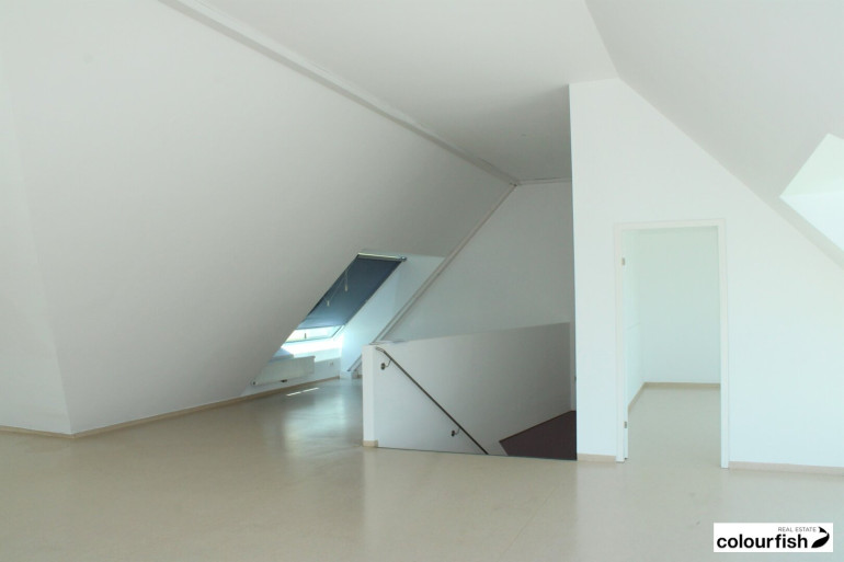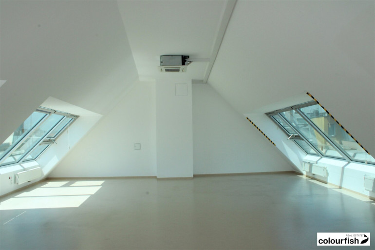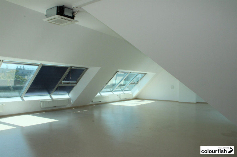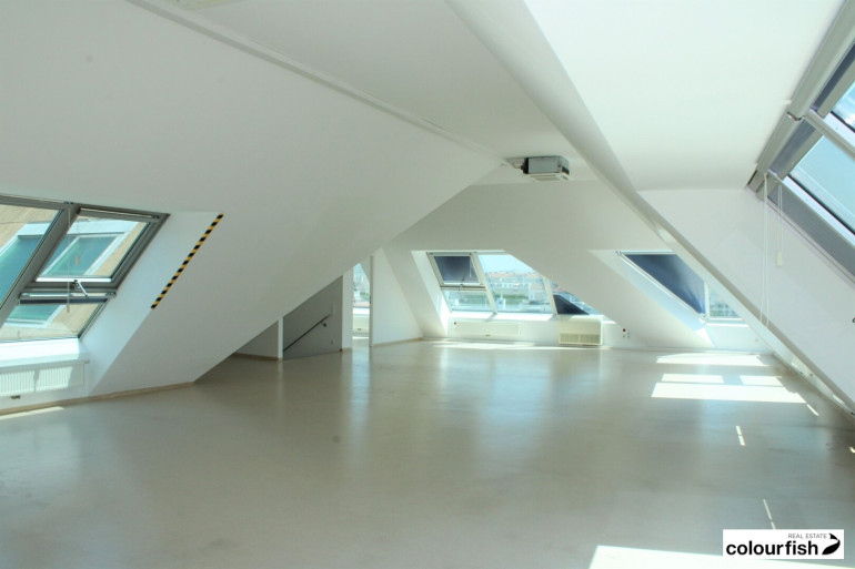 Die verfügbare Einheit liegt im 4. und 5. OG im Neubautrakt, die beiden Geschoße sind durch eine innenliegende Treppe miteinander verbunden. Die Sanitäreinheiten sind über das Stiegenhaus erreichbar.