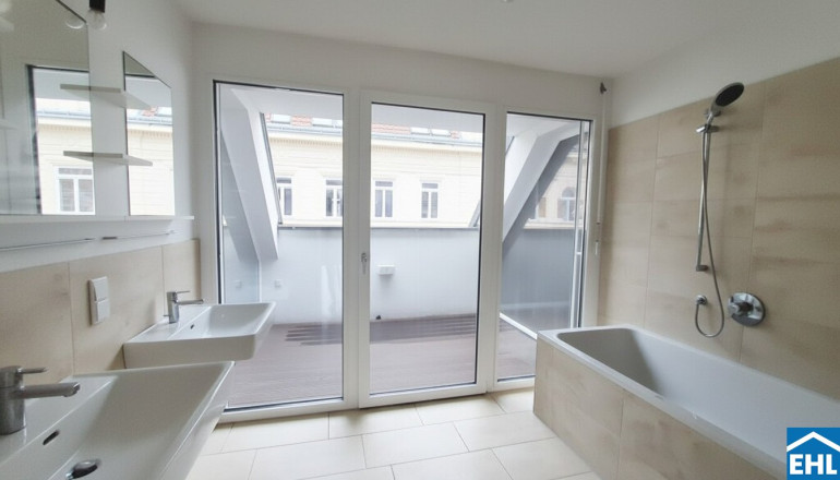 Diese Wohnung selbst befindet sich im 1. Dachgeschoss und verfügt über eine Wohnküche, zwei Schlafzimmer, ein Badezimmer mit Badewanne, ein separates WC sowie über einen Abstellraum und einen Vorraum. Die zwei dazugehörigen Terrassen bieten die perfekte Möglichkeit im Freien zu Verweilen.