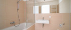 - Badezimmer mit Badewanne, Waschbecken und Waschmaschinenanschluss