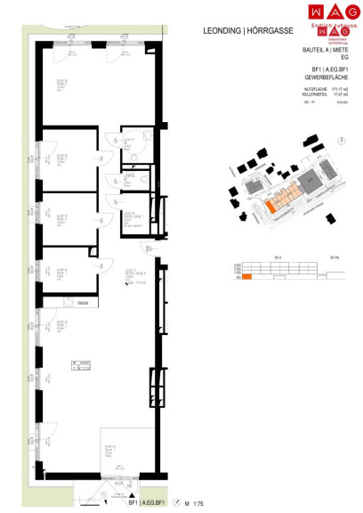 - Gewerbefläche mit 171,17 m², 191,49 m² und 247,80 m², die ersten beiden sind kombinierbar