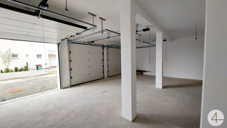 - 100 m2 Erdgeschoß mit 3,5 m Raumhöhe und 3 Garagen