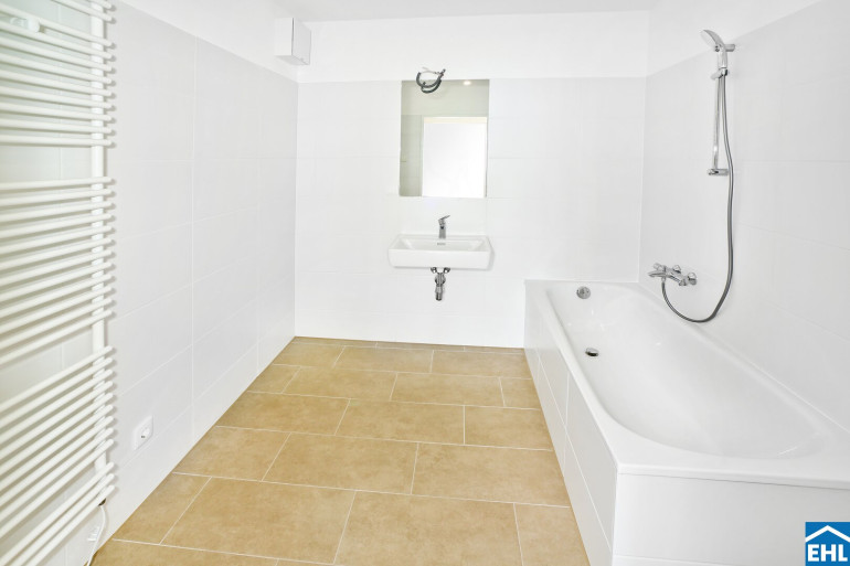 - Moderne Bäder mit Badewanne und Waschmaschinenanschluss.