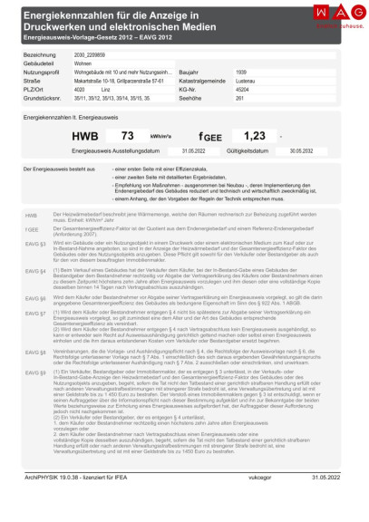 | Heizwärmebedarf: | 73,00 kWh/m²a |