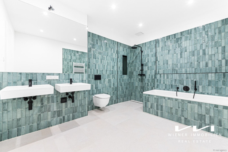 + Badezimmer mit Wanne, Dusche, WC und Doppelwaschtisch