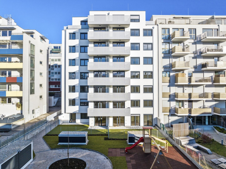 Die Errichtung dieser Wohnhausanlage, aufgeteilt in 5 Baukörper mit insgesamt 121 freifinanzierte Eigentumswohnungen, erfolgte in Massivbauweise.