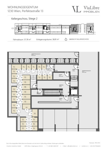 Die Liegenschaft ist voll unterkellert und bietet neben 62 KFZ-Abstellplätzen noch genügend Platz für Kinderwagen- und Fahrradabstellräumen.