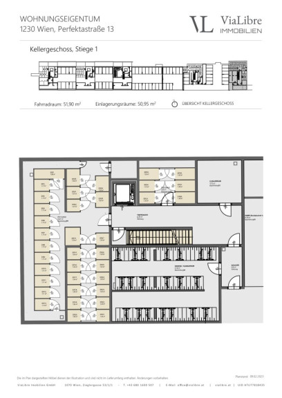 Die Liegenschaft ist voll unterkellert und bietet neben 62 KFZ-Abstellplätzen noch genügend Platz für Kinderwagen- und Fahrradabstellräumen.