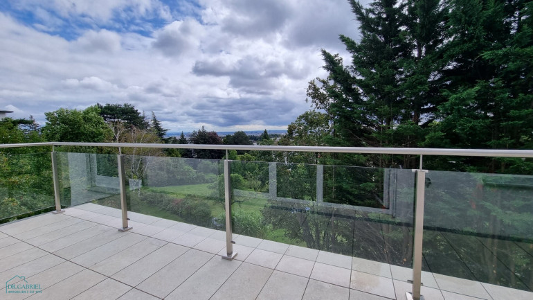 DACHGESCHOSS: Vorraum, Aufzug, drei Schlafzimmer, ein Badezimmer mit Wanne, Dusche und WC, zwei weitere Duschbäder mit WC, zwei Balkone