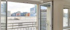 Französische Fenster im Wohn- und im Schlafzimmer bringen viel Licht herein und lassen genießen, dass die Wohnung im Wesentlichen kein Gegenüber hat.