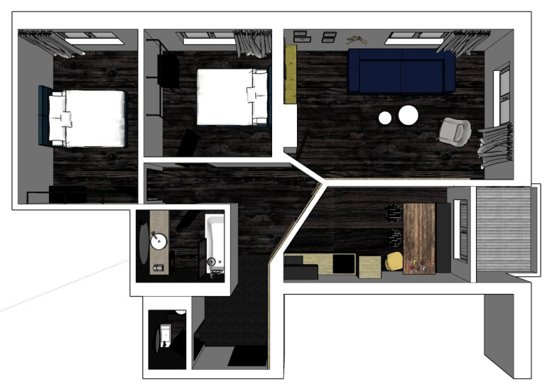Der Fußboden besteht aus Fliesen und Parkettböden. Die Wohnung ist mit einer Zentralheizung, einer Einbauküche, einer Badewanne und Kabel / Satelliten-TV ausgestattet.