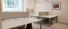 > Komplett ausgestattet mit weißen Schreibtischen samt Rollconttainern (weiß), teilweise Bürostühlen (schwarz), Beleuchtungskörper, komfortablen Einbaukästen bzw. Wandverbauten