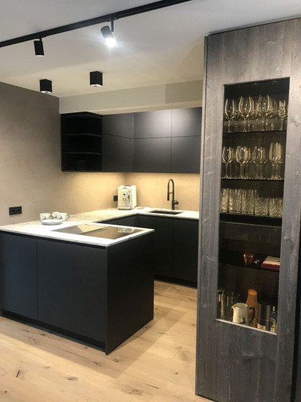 - Geschmackvolle Tischler-Maßküche mit hochwertigsten Markengeräten von Bora und großem Liebherr Weinkühlschrank
