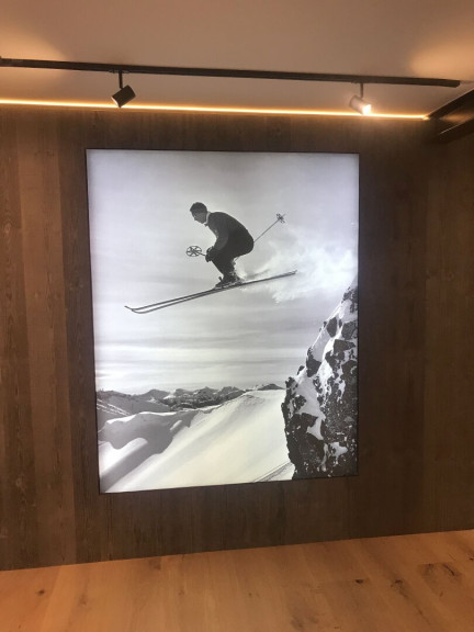 - Inszenierter Skifahrer im historischen Outfit - stylische Lichtinstallation in der Wohnküche