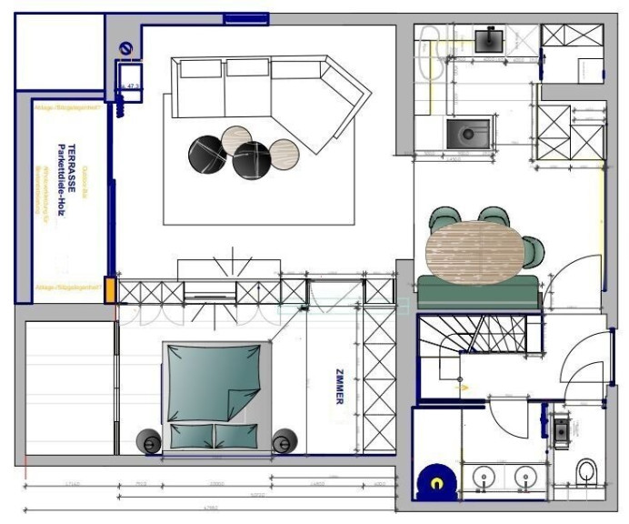 - Dachterrasse mit 4 Barhocker und Infrarotpanel
