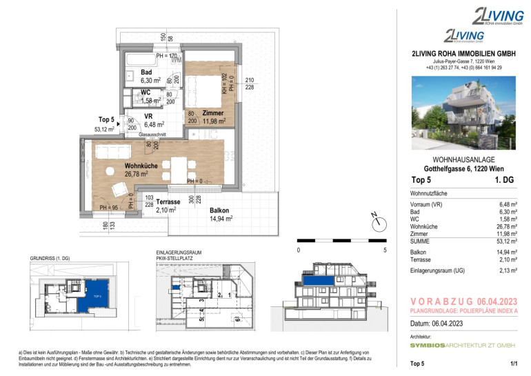 | Top | 5: | 53m² | 2 Zimmer | 15m² Terrasse / Loggia | € 419.000,-- |