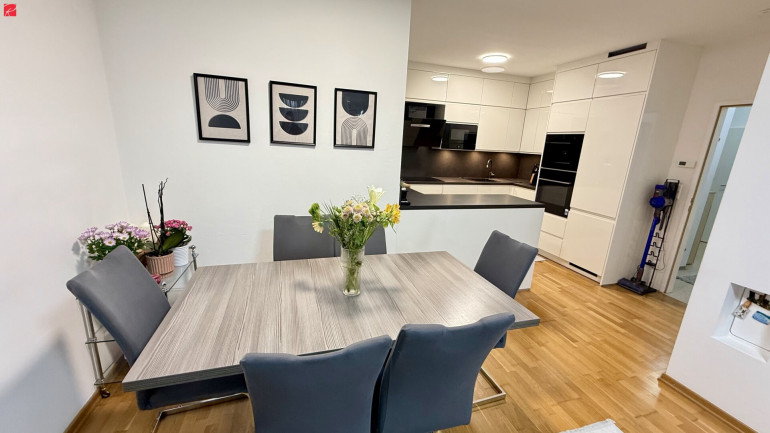 Fliesen, Laminatboden, Parkett, Zentralheizung, Wohnküche / offene Küche, Westbalkon, Badewanne, Kabel/Satelliten-TV, Tiefgarage