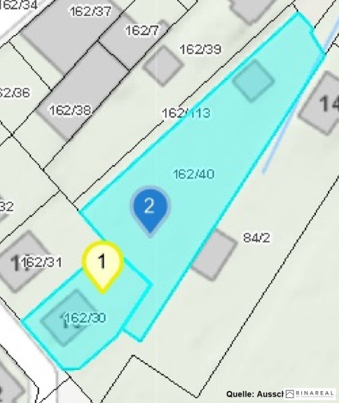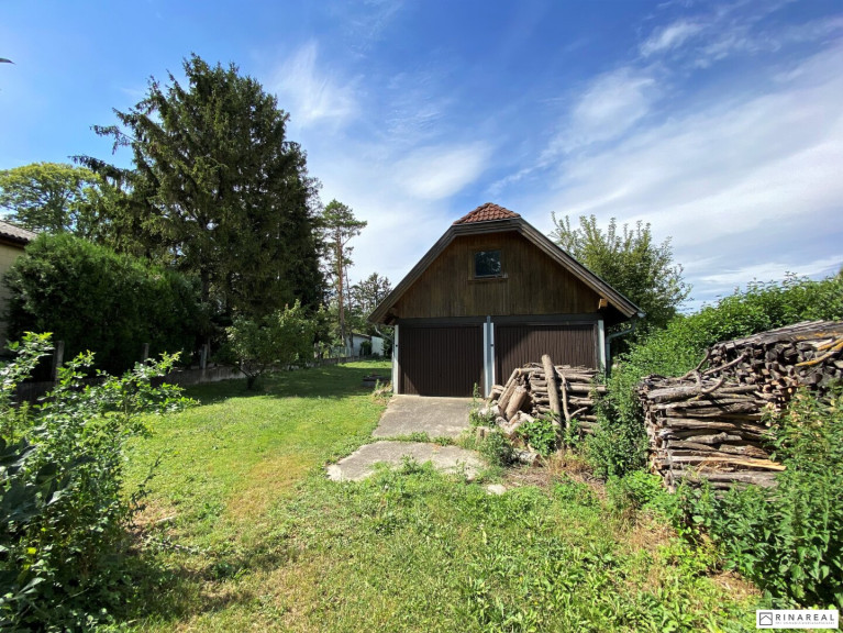 Auf der hinteren Liegenschaft (noch nicht aufgeschlossen - mit ca. 1.753 m³) steht eine Doppelgarage mit Abstellraum.