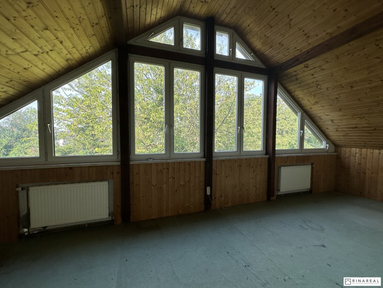 - OG: 2 Zimmer mit verglastem Balkon + unausgebaute Dachbodenfläche