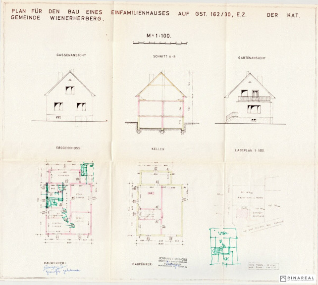 - EG: Vorraum, Küche, Wohnzimmer, Esszimmer, Schlafzimmer, Bad mit WC