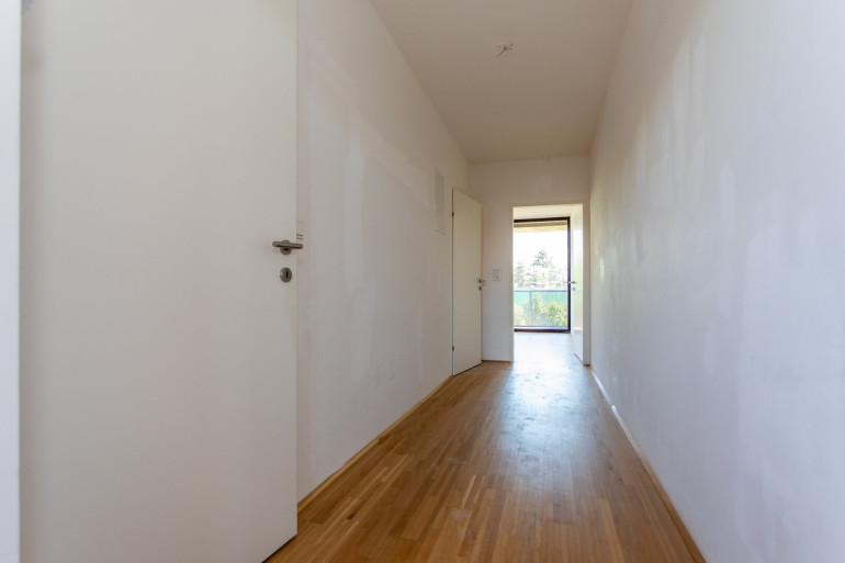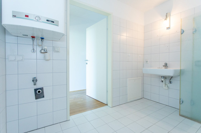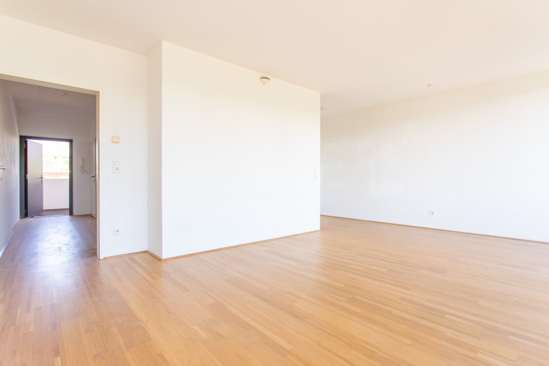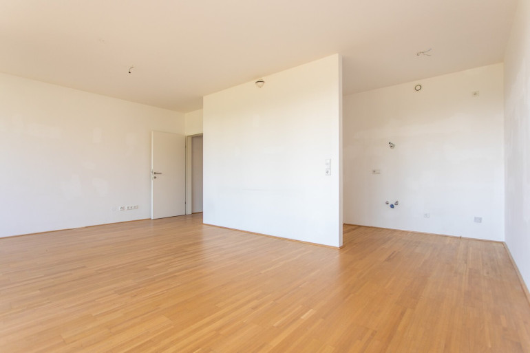 Der großzügige Wohnbereich mit integrierter Kochnische lädt zum Verweilen ein. Ergänzt wird die Wohnung durch ein herrliches Schlafzimmer, sowie ein modernes Badezimmer mit bodengleicher Dusche, Waschbecken und WC.