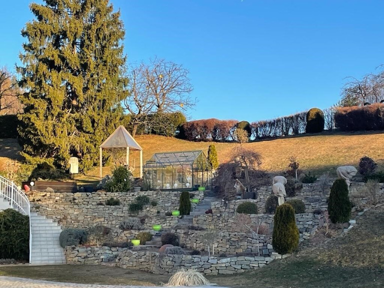 Eingebettet in die atemberaubende Landschaft der Südsteiermark, nur einen Steinwurf von der renommierten steirischen Weinstraße entfernt, bietet dieses Anwesen nicht nur eine beeindruckende Aussicht, sondern auch eine Oase der Ruhe und Erholung für Naturliebhaber und Ruhesuchende. Mit einer großzügigen Wohnfläche von 550 m², die durch einen exquisiten SPA-Bereich und moderne Fitnessräumlichkeiten ergänzt wird, erleben Sie hier höchsten Wohnkomfort. Der private Swimmingpool lädt zu erfrischenden Stunden im Freien ein und bietet einen perfekten Ort zur Entspannung. Das Anwesen verfügt zudem über ein stilvolles 200 m² Gästechalet, sowie eine komfortable Mitarbeiterwohnung, die Ihnen und Ihren Gästen das beste Service bietet. Die erstklassige Ausstattung und das hochwertige Inventar zeichnen diesen einzigartigen Wohntraum aus und garantieren ein Leben auf höchstem Niveau.