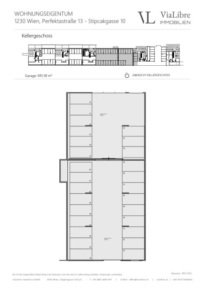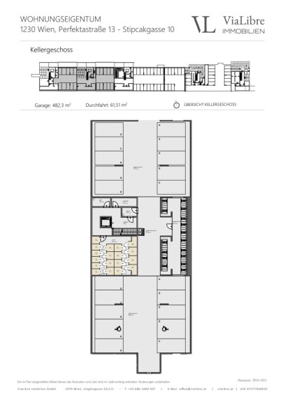 Die Liegenschaft ist voll unterkellert und bietet neben 62 KFZ-Abstellplätzen noch genügend Platz für Kinderwagen- und Fahrradabstellräumen.