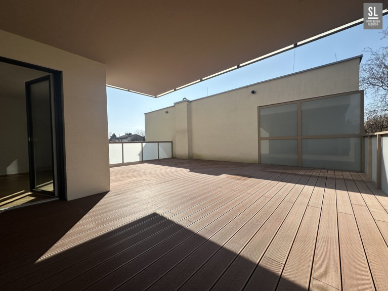 WOW - diese Wohnung bietet viel Komfort mit Entspannungsgarantie! Das absolute HIGHLIGHT ist die ca. 52m² große, mit WPC Terrassendielen belegte Süd-West-Terrasse: Sonnenliegen, Sonnenschirm, Griller und ein großzügiger Essplatz sind leicht unterzubringen. Selbstverständlich ausgestattet mit frostsicherem Wasseranschluss.