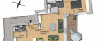 Die Wohnfläche von rund 72m² verteilt sich auf Vorraum, Abstellraum, Schlafzimmer mit integriertem Bad, separates WC, großzügige Wohnküche und Wohnzimmer mit Ausgang auf den Balkon.