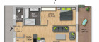 Die Wohnfläche von rund 62m² verteilt sich auf Vorraum, Abstellraum, Schlafzimmer mit integriertem Bad, separates WC, großzügige Wohnküche und Wohnzimmer mit Ausgang auf den Balkon.