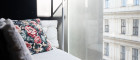 Im vierten Obergeschoß gelegen, zeichnet sich diese Wohnung durch ihre einzigartige und komfortable Anordnung aus. In den hellen und ruhigen Innenhof ausgerichtet, gibt es zwei Zimmer mit großzügigen Fensterflächen. Das Schlafzimmer ist möbliert (ein neues Hotelbett der Hotelkette SOFITEL, nicht am Foto abgebildet, bezogen im POLIFORM-Stoff des Sofas im Wohnzimmer ist im Preis inbegriffen), die Wand hinter dem Bett indirekt beleuchtet.