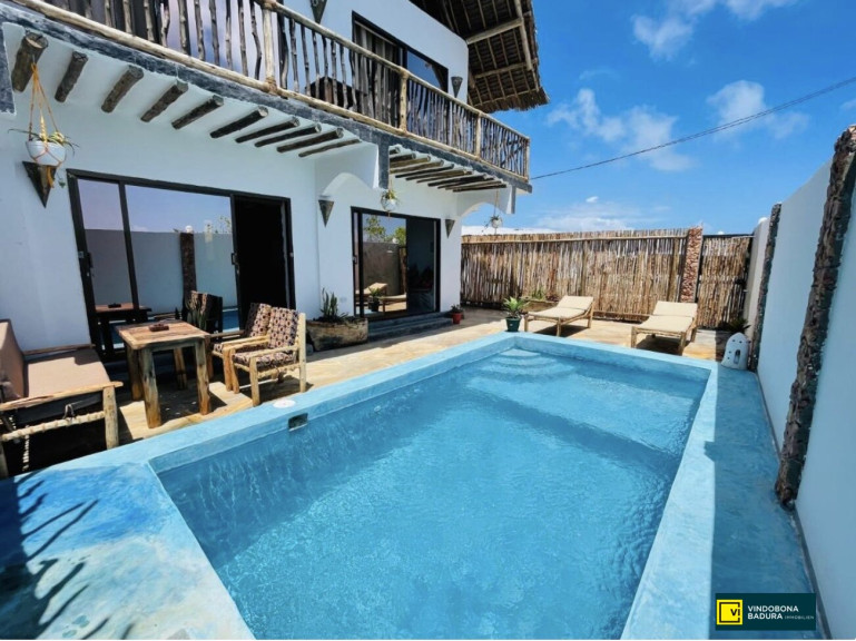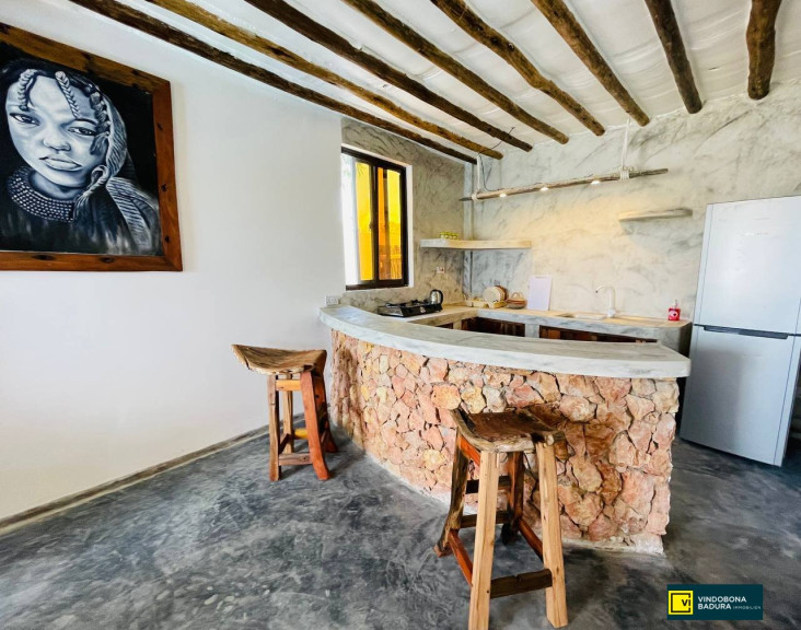Jede Villa ist mit hochwertigen Möbeln und handgefertigtem Dekor im Swahili-Stil ausgestattet. Warmwasser, Strom, WIFI sind in jeder der Villen selbstverständlich Standard. Zwei der Villen verfügen über 140 m² Wohnfläche, die Dritte über 200 m².