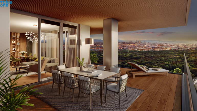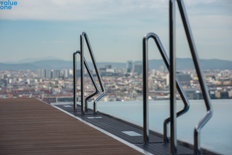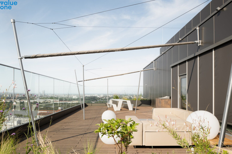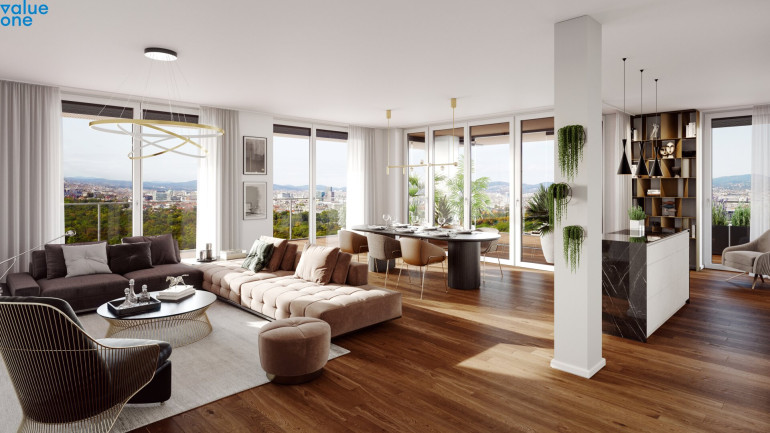 - Dining Area und großzügige Terrassenflächen mit Wienblick