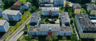 Insgesamt gibt es vier Haupthäuser, sowie zwei Eck-Verbindungshäuser. Ein liebevoll angelegter Innenhof, mit verspielten Details, viel Grünfläche und Sitzgelegenheiten, lädt zum Verweilen im Freien ein.