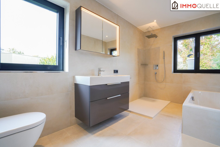 Insgesamt bietet die Wohnung drei Schlafzimmer - flexibel nutzbar als Kinderzimmer, Büro oder Gästebereich Besonders erwähnenswert ist das Master-Bedroom mit direktem Terrassenzugang sowie einem eigenen Zugang zum eleganten Badezimmer. Dieses ist mit Tageslicht durch zwei Fenster, einer Walk-In Dusche und einer Badewanne ausgestattet - Ihre persönliche Entspannungsoase.