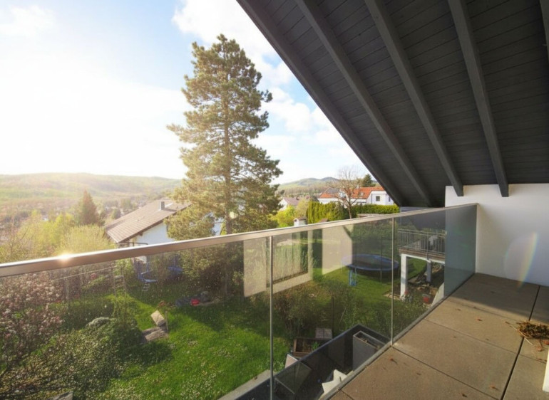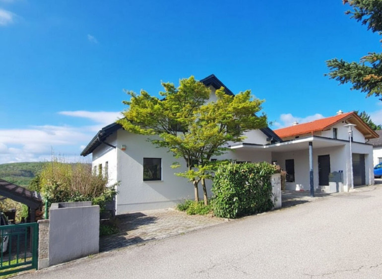 Dieses großzügige Einfamilienhaus befindet sich in Gehdistanz zum Ortszentrum in einer der begehrtesten Wohngegenden von Gablitz. Es liegt leicht hanglagig auf einem nach Südwesten ausgerichteten Grundstück und punktet mit einem traumhaftem Panoramablick über das Gablitzer Gemeindegebiet hinweg auf die bewaldeten Hügel des umgebenden Wienerwalds.