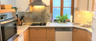 Parkett, Fliesen, Gas, Heizofen, Zentralheizung, Wohnküche / offene Küche, Dusche, Bad mit Fenster, Badewanne, Alarmanlage