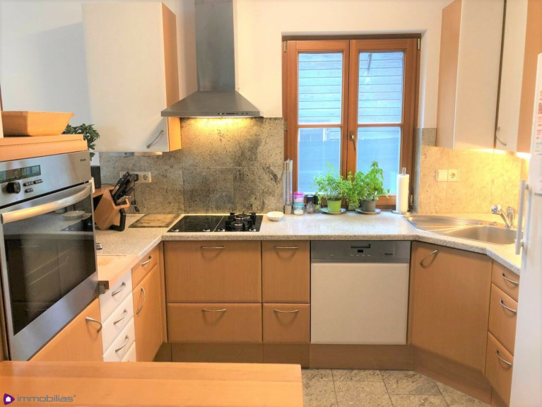 Küche mit allen gängigen Geräte: Geschirrspüler, Herd, Backofen, Dunstabzug, Kühl- Gefrierkombi ; Parkettböden in den Räumen, Fliesen in der Küche, in den Nassbereichen und im Vorzimmer, Alarmanlage, Raffstores, Klimaanlage
