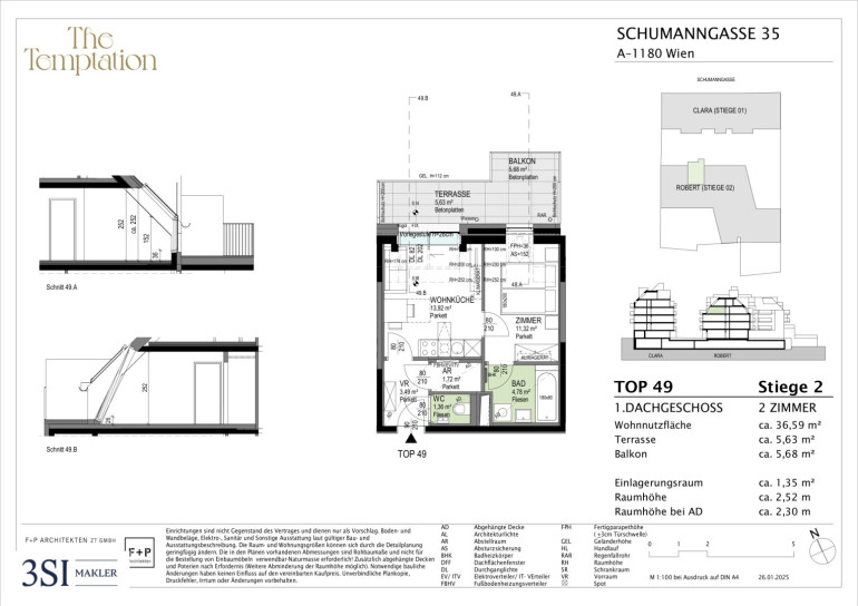 Was für ein Paar! Im Herzen von Währing vereinen sich zwei Gebäude zu einem unwiderstehlichen Wohnensemble. Ein Zuhause für diejenigen, die von außergewöhnlicher Eleganz und einzigartigem Komfort verführt werden möchten. Clara und Robert, das sind zwei Wohnhäuser mit insgesamt 85 Eigentumswohnungen und 14 Geschäftslokalen mitten im Geschehen von Währing – und das bei einer einmalig ruhigen Lage. Ob Rückzug im eigenen Garten oder direkte Anbindung ans Stadtleben – The Temptation macht beides möglich! Alle Eigentumswohnungen verfügen über 2 bis 5 Zimmer mit Größen von 37 bis 180 m² und perfekt konzipierten Grundrissen. Großzügige Balkone, Terrassen und atemberaubende private Gärten auf verschiedenen Ebenen erhöhen den Wohnkomfort. Ein besonderes Highlight ist der begrünte Innenhof, der sowohl ein Treffpunkt als auch eine Ruheoase ist. Dort, wo Nachhaltigkeit, Ästhetik und Lebensqualität aufeinandertreffen, entsteht eine unwiderstehliche Versuchung: ein modernes, frisches Leben, das zum Verlieben schön ist.
